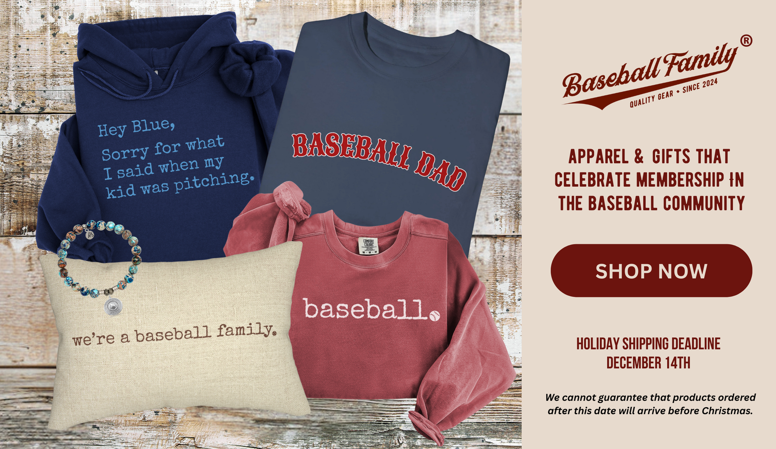 Our original Baseball Family® branded apparel & gifts celebrate membership in the baseball community and baseball friends that become family.