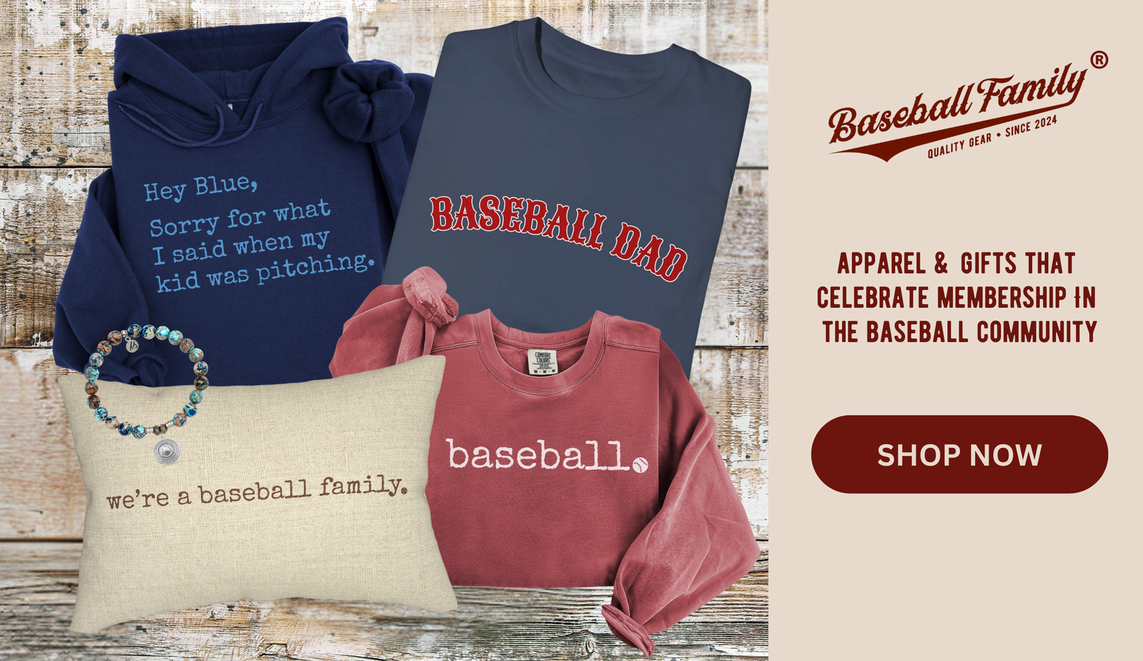 Our original Baseball Family® branded apparel & gifts celebrate membership in the baseball community and baseball friends that become family.